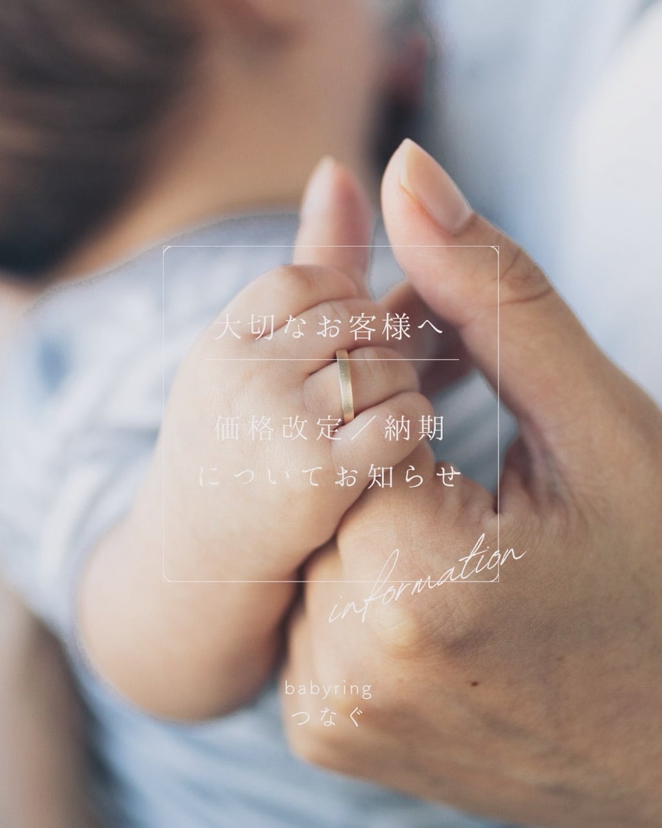 ※すべての商品がオーダーをいただいてから お作りいたします。(納期約5週間) 上記発送予定日は目安となりますので 予めご了承くださいませ。 ----------------------- とき ₋時をつなぐ₋ (ベビー用サイズ) ●リングの寸法 内径:約10mm/外径:約12.5mm/幅:約1.5mm ●素材 ・プラチナ950 ・シルバー925 ・K10(イエローゴールド/ピンクゴールド/ホワイトゴールド) ・K18(イエローゴールド/ピンクゴールド/ホワイトゴールド) 4種類よりお選びいただけます ※【K10素材】【プラチナ950、K18素材】をご希望の方へ ・上記素材は別途料金がかかります。 オプション「素材について」より ご希望の素材を必ず選択ください。 ●表面仕上げ 表面:マット加工 / 側面と内側:鏡面加工 ●誕生石 1月~12月各誕生石より一つお選びいただけます ※〚NEW〛最大3石まで誕生石を留めることが 可能になりました!(別途料金がかかります) ご希望の方はオプション 「誕生石を追加で留める」 を選択いただき、ご希望の誕生石2石又は 3石をすべて備考欄に必ずご記入ください ●刻印 指輪の表面に~10文字まで 刻印をお入れいたします (スペースや記号も1文字扱いとなります。) (書体一覧は、商品写真をスライドいただきますと後方にご確認いただけます) ・「素材・誕生石について」のご説明はこちら https://tsunaguring.theshop.jp/p/00002 【お届けするもの】 ・ベビーリング(べビー用)1本 ・リングケース ・「はじめまして」をつなぐノート (メッセージカード) ・品質保証書 男の子、女の子、性別関係なく 着けることのできるシンプルなデザイン。 時計の文字盤をイメージして、 指輪側面にひっそりと、 お守りとなる誕生石を埋め込みました。 これからの人生にずっと寄り添って、 一緒に沢山の思い出と、 時を刻んでいけるような 大切な存在となりますように。 【ご注意】 ・オーダーをいただいてから作製をしますので、 ご注文からご納品まで約5週間程度の お時間をいただきます。 ・リングサイズの変更はできません。 〜1歳の赤ちゃんを想定したサイズで お作りはしていますが、 必ず赤ちゃんの指に通ることは 保証できないことを 予めご了承くださいませ。 ・お渡し後の磨き直しなどのメンテナンスは 初回から有料となります。 ・お使いの端末や閲覧環境により、 写真と実物の色味や質感が 異なって見えることがあります。 ・ひとつひとつ手作りのため、色や形に 若干の違いがある場合がございますので 予めご了承くださいませ。 ・本商品は受注生産品のため、 注文確定後のキャンセル・変更は お受けできません。 万が一、キャンセルをご希望される場合は キャンセル料が発生します。 ・お届けした商品に破損や不備、 商品の不足があった場合、 商品到着後3日以内にご連絡ください。 事実確認の上、至急対応を致します。